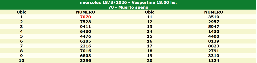 Quiniela De Buenos Aires 18 de Marzo 2026