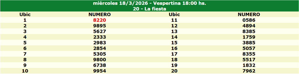 A continuación, te presentamos los números ganadores del sorteo realizado en el día de hoy. Recuerda que los sorteos se llevan a cabo en diferentes turnos, y los jugadores tienen la posibilidad de participar en la primera, segunda, tercera y cuarta quiniela.