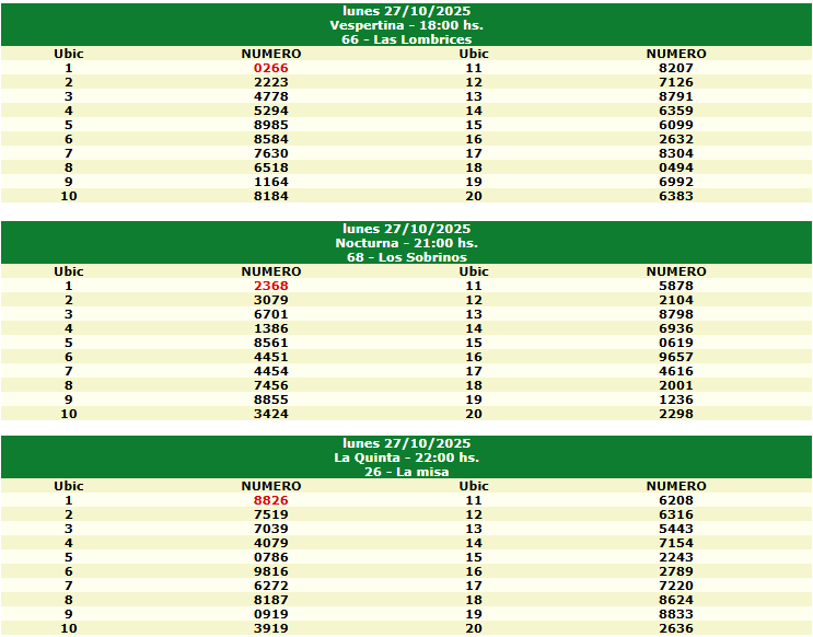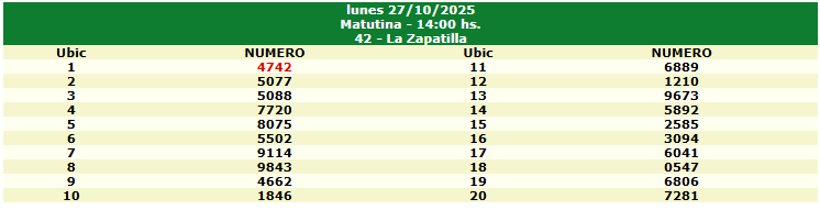 Estos resultados corresponden a los diferentes turnos de la Quiniela Formosa del día 27 de Octubre de 2025. Si tus números coinciden con alguno de los sorteos, es momento de revisar tus apuestas y reclamar tu premio.