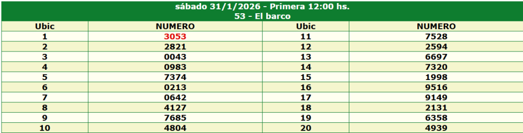 Resultados de la Quiniela de Buenos Aires del 31 January 2026