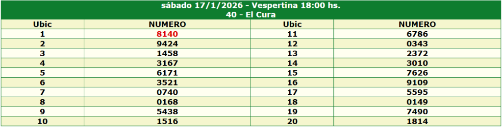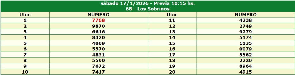 Resultados de la Quiniela de Corrientes del 17 January 2026