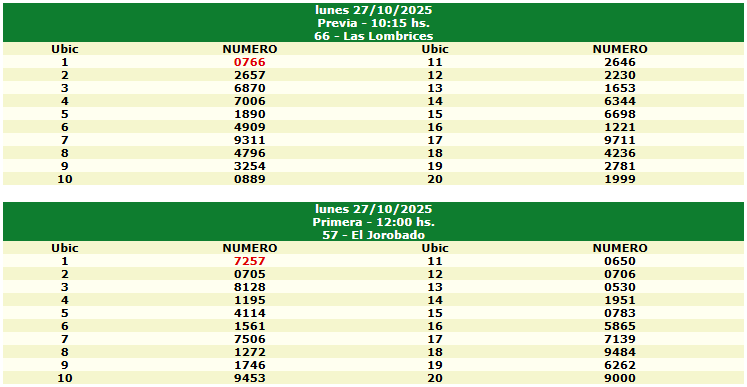 Resultados del Sorteo del 27 de Octubre de 2025