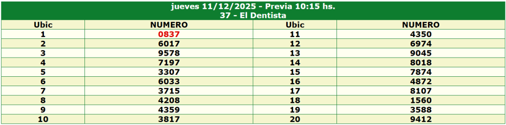 Resultados del Sorteo del 11 Diciembre 2025