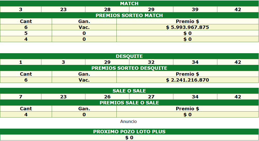 Puedes consultar los resultados completos del Loto de Argentina con Modo Match en sitios como Ruta 1000, donde publicamos cada uno de los resultados actualizados diariamente. También puedes verificar los números ganadores en agencias de lotería autorizadas y a través de la aplicación oficial de Lotería Nacional.