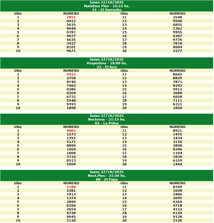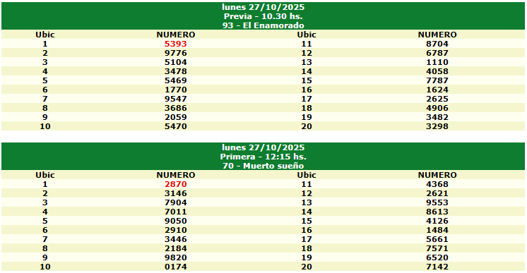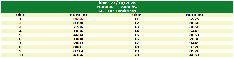Resultados de Hoy – 27 de Octubre de 2025