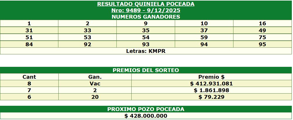 Resultados de Quiniela Poceada