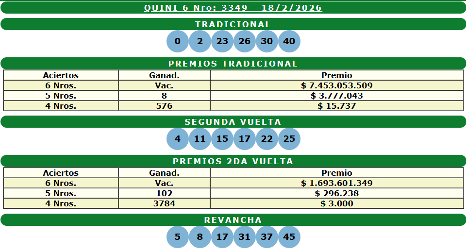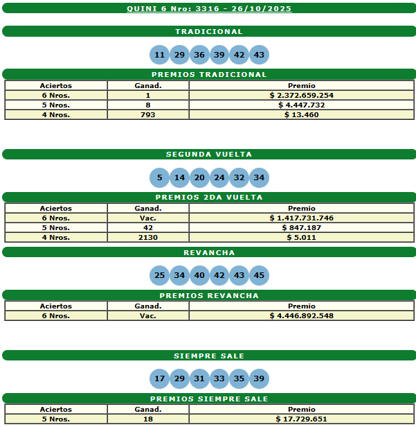 Si no hay ganadores en alguna de las categorías del Quini 6 (excepto el Siempre Sale), el pozo se acumula para el siguiente sorteo, lo que puede hacer que los premios alcancen cifras multimillonarias.