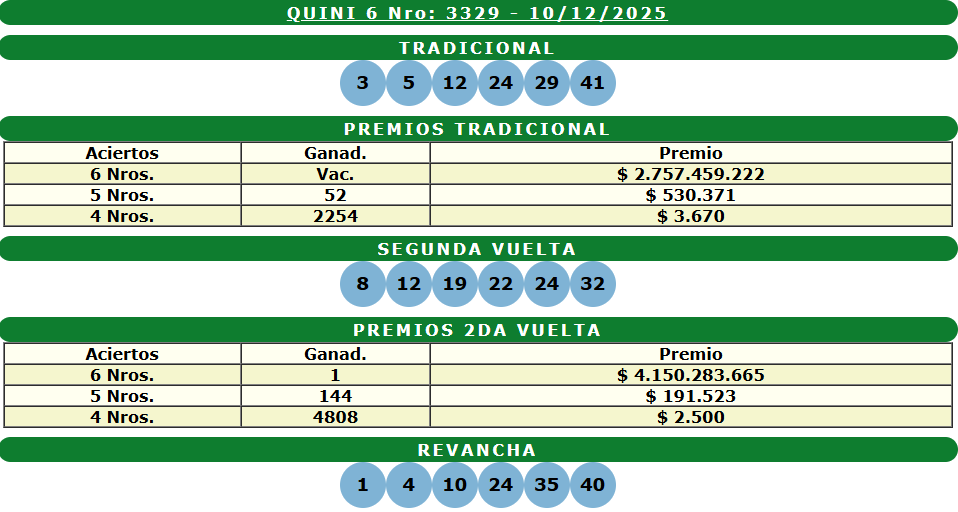 Resultados Quini 6 10 Diciembre 2025