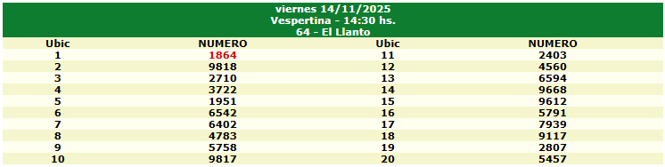 En Ruta1000 consulta los resultados oficiales de la Quiniela San Juan de hoy en directo, correspondientes al sorteo del 14 Noviembre 2025 a las 21:30 hs. Publicamos los números ganadores apenas se realiza el sorteo para que confirmes tu jugada al instante. La Quiniela San Juan es tradición en la provincia y cada jornada atrae a miles de apostadores. Además de los resultados actuales, en Ruta1000 podrás revisar sorteos anteriores y estadísticas útiles para seguir tu juego. Ingresa ya y revisa en vivo los números de la Quiniela San Juan de hoy.