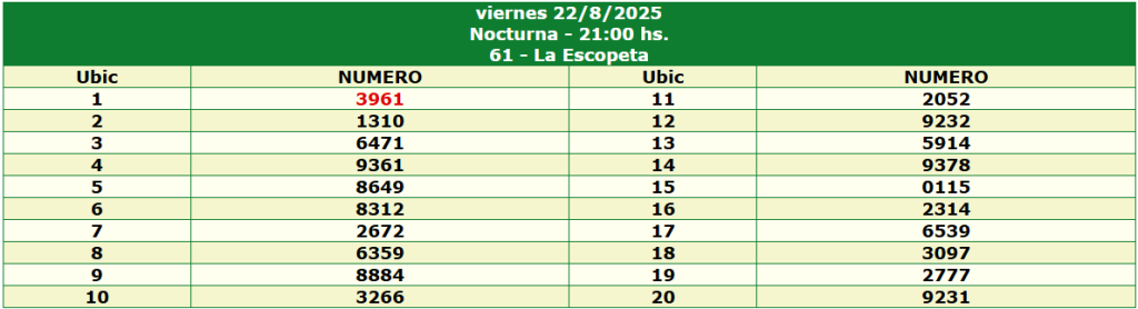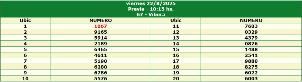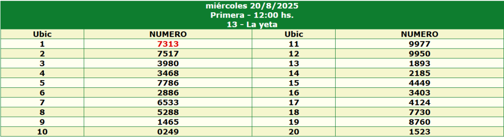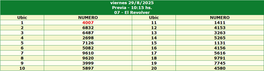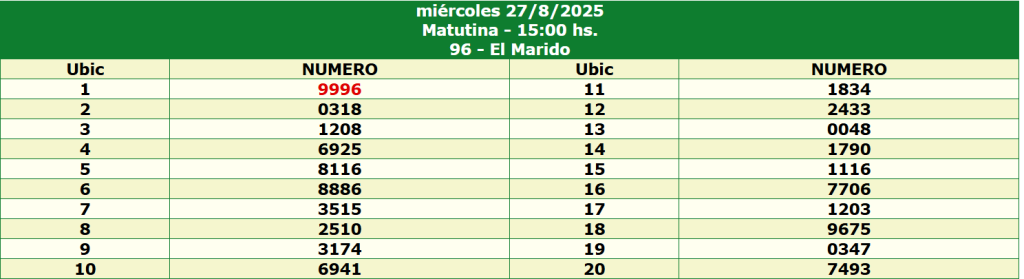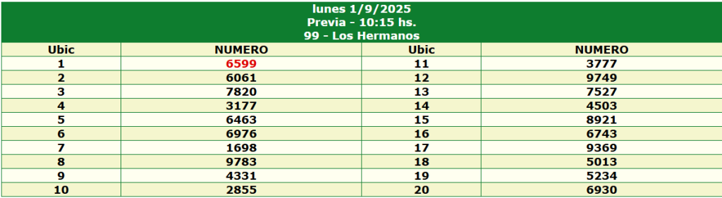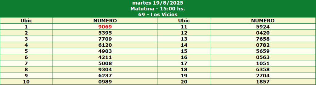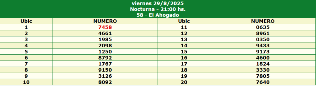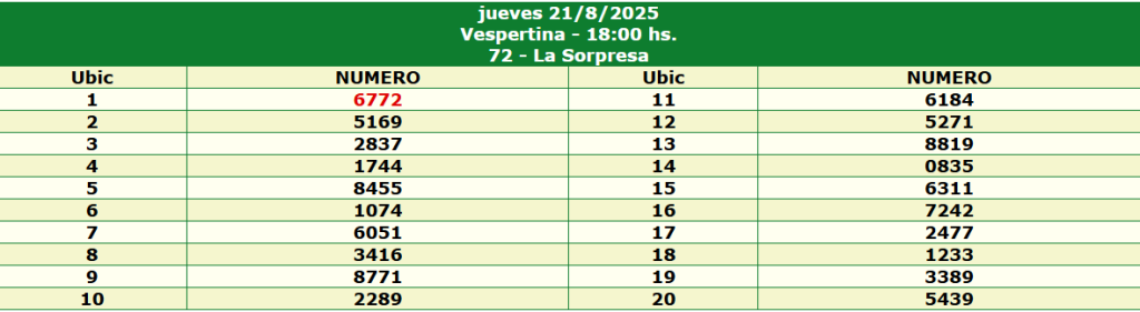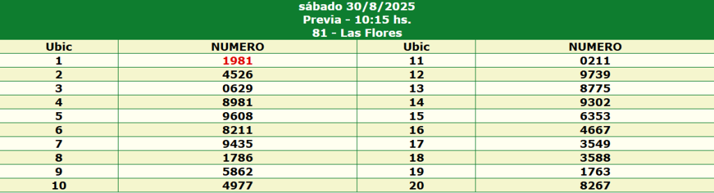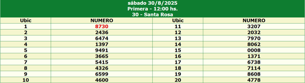 Cada uno de estos números ha sido sorteado de manera transparente y legal por la Lotería de San Luis. Los jugadores que hayan acertado podrán reclamar sus premios en los puntos de venta oficiales.