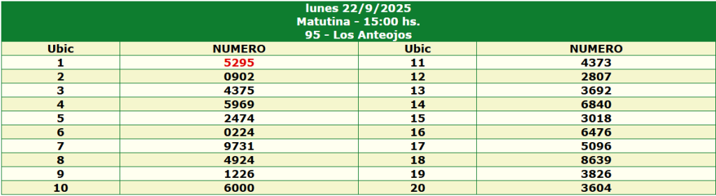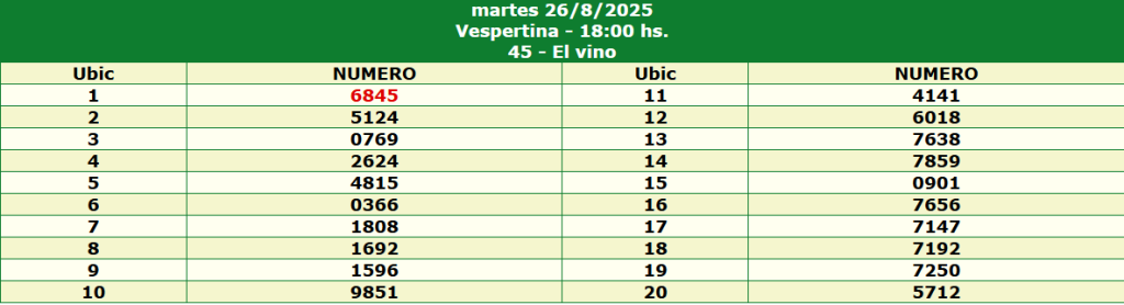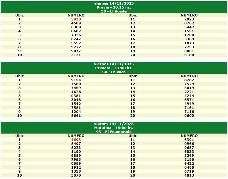 Aquí te presentamos los números ganadores correspondientes a cada turno del sorteo de hoy: