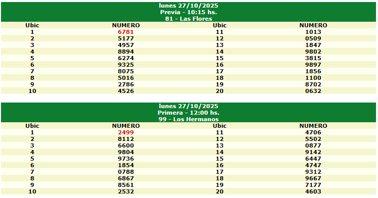 Resultados de la Quiniela Santa Fe 27 de Octubre de 2025